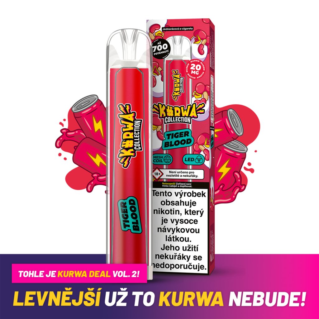 Poznej tu pravou chuť energetického nápoje v každém potahu. Že by Tiger energy drink? Kurwa e-cigarety vydrží až 700 potáhnutí.