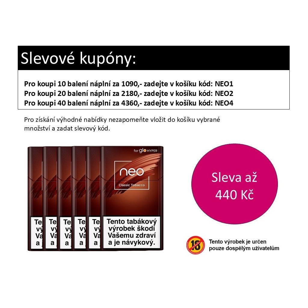 Tabákové náplně neo™ v novém formátu obsahují více tabáku, které jsou určeny pro zařízení glo™ Hyper X2 a glo™ HYPER X2 AIR.