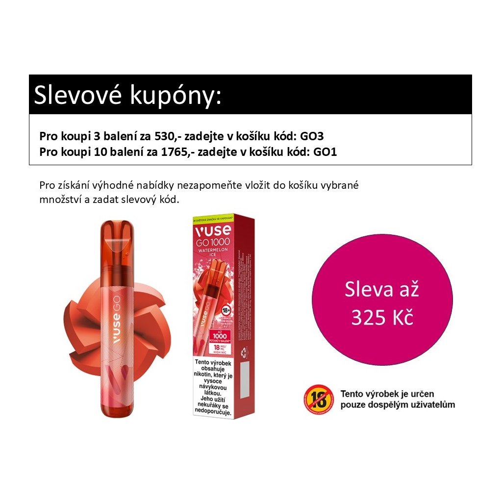 Intenzita nikotinu: 18 mg/ml, celkový obsah nikotinu v každém zařízení Vuse GO 1000: 36 mg